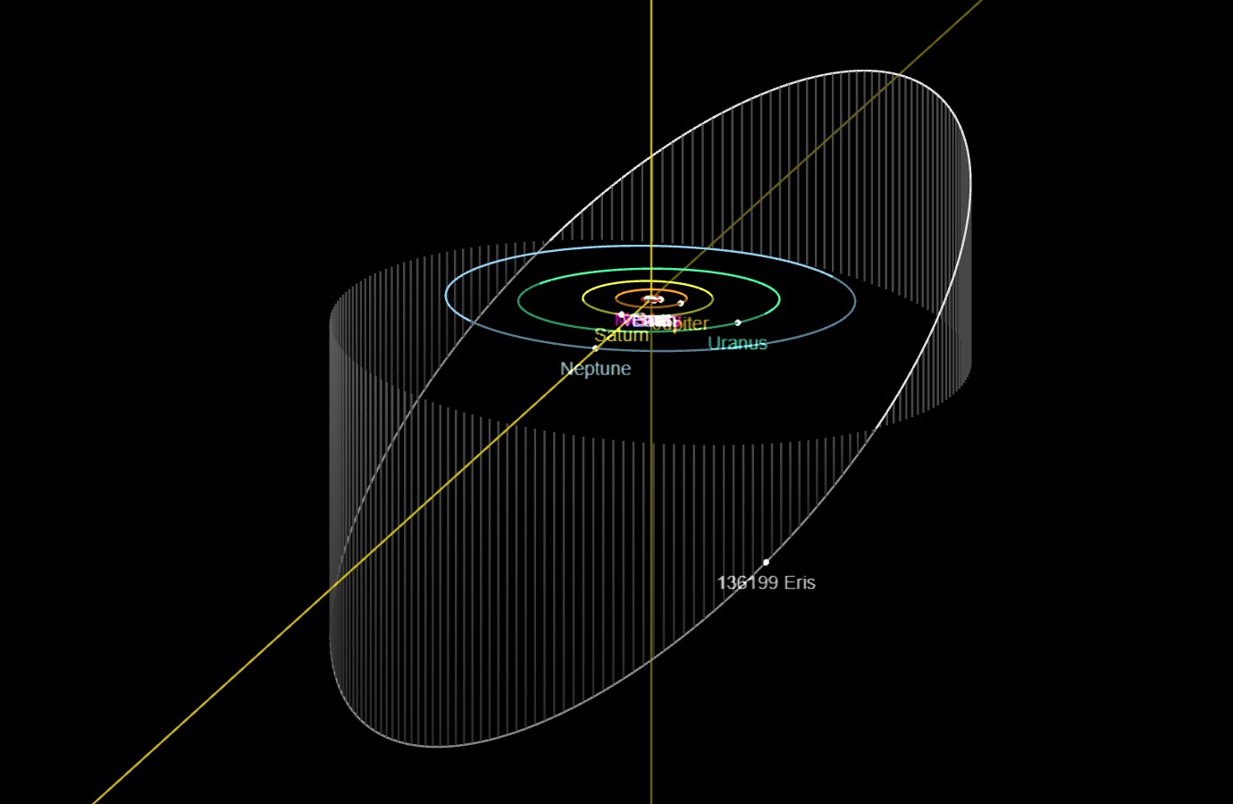 Avec un diamètre de 2’326 km avec sa lune Dysnomie (environ 700 km de diamètre), c’est la plus massive des planètes naines et la 2ème plus grande après (132340) Pluton. Elle se trouve au delà de la ceinture de Kuiper et a une orbite avec une forte inclinaison de 44 degrés. Elle boucle un tour du Soleil en 559 ans.