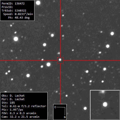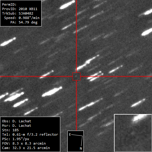 | 2026-01-20T21:38:11Z | --- | 2011 SL273 | Main Belt | xxx | 3 | ASI6200MM-Pro / BIN5 | 100x30s / 1h08 | SJA0945 | 20.2 V | D. Lachat | Publi pending | |