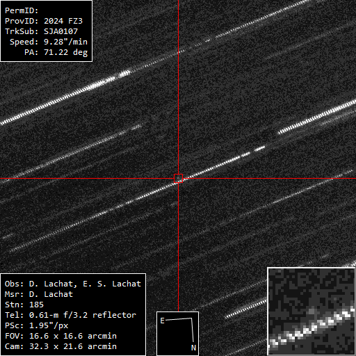 | 2024 01 29.79812 | 277148 | 2005 MZ2 | Main Belt | 1.2 km | 3 | ASI294MM-Pro / BIN8 | 71x90s / 2h12 | SJA0041 | 20.6 V | D. Lachat | MPS 2115341 | |