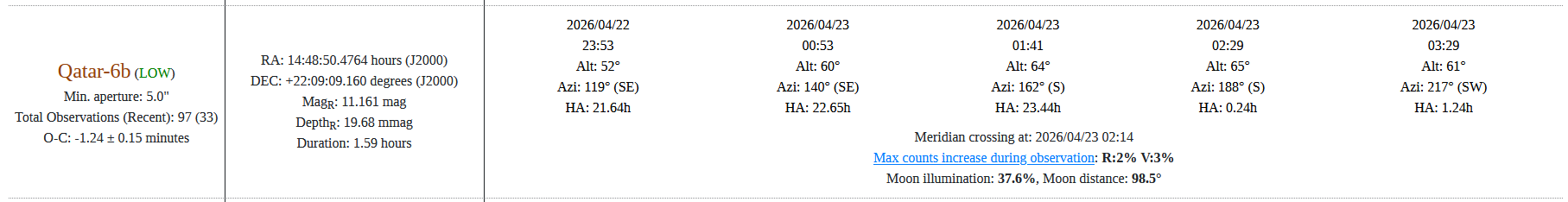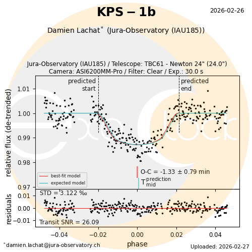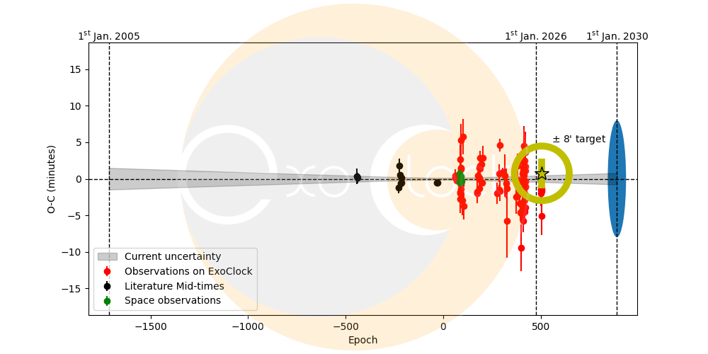A Vicques, grâce au TBC61, nous participons également aux programmes de mesures dans le cadre du programme Exoclock dont le but est la surveillance des éphémérides des transites d’exoplanètes par le « ARIEL Ephemerides Working Group » dans le cadre de la futur mission spatiale ARIEL de l’ESA (lancement prévu en 2029).